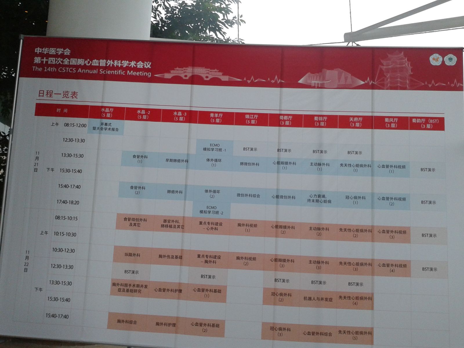 2014年11月19-22日,公司参加了中华医学会第十四次全国胸心血管外科学术会议,并在会议中心5层高新厅展示了公司的产品信息,为进一步在胸心血管外科领域推广奠定了基础.